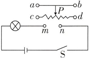 7. 如图所示,在m、n两点间接一滑动变阻器来控制电灯的亮度,电路图的上方为滑动变阻器的结构示意图,要求滑动变阻器的滑片向左移动时,电灯逐渐变亮,则滑动变阻器连入电路的方式为(