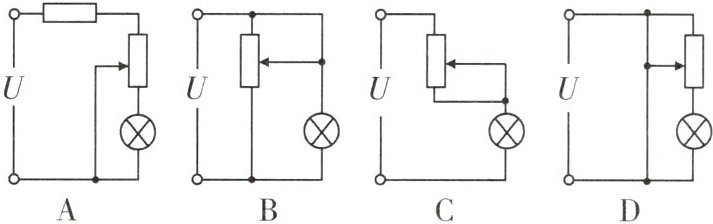 5. 如图所示是用滑动变阻器调节灯泡亮度的几种方案,你认为可能达到目的的是 (