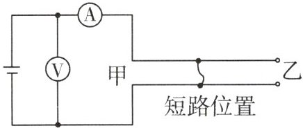 13. 在相距$15km$的甲、乙两地之间有两条输电线,已知每$1m输电线的电阻为0.01Ω$,现输电线在某处发生短路,为确定短路位置,检修员利用电压表、电流表和电源等连接成如图所示电路进行检测,当电压表的示数为$6V$时,电流表的示数为$0.06A$,则甲地与短路位置之间的输电线总阻值为