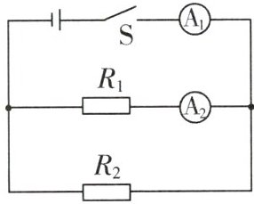 (1)由图可知,两电阻并联,电流表 $ A_{1} $ 测量干路电流,