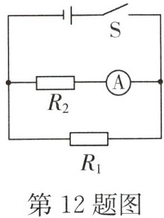 12. 如图所示,电源电压恒为$6V$,$R_{1}的阻值为10Ω$,闭合开关后,电流表的示数为$0.4A$,则通过$R_{1}$的电流为