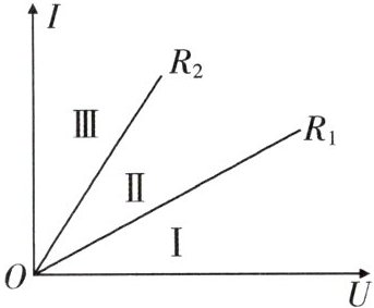 5. 【模型构建】定值电阻$R_1$、$R_2的I - U$图像如图所示. 若$R_1$、$R_2串联后的总电阻为R_{串}$,并联后的总电阻为$R_{并}$,则关于$R_{串}$、$R_{并}的I - U$图像所在的区域,下列说法中正确的是 (