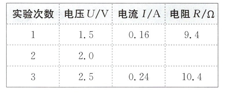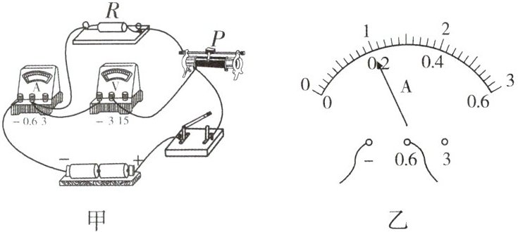 (4)排除故障后,小聪正常进行实验并将实验数据记录在下表中. 若第 2 次测量时电流表的示数如图乙所示,为______$A$,根据三次实验数据可得定值电阻$R = $______$\Omega$(结果保留一位小数).