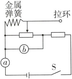 5. 科技应用 如图所示电路是小亮设计的电子拉力计的简化电路,在向右拉动金属拉环的过程中,电表a和b中有一只表的示数随拉力的增大而增大. 下列说法正确的是(
