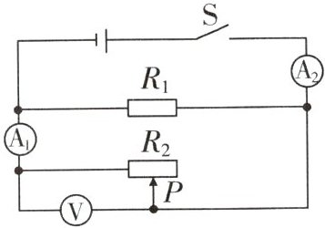 D.电流表$A_2、$$A_1$示数之差与电压表示数的乘积变小