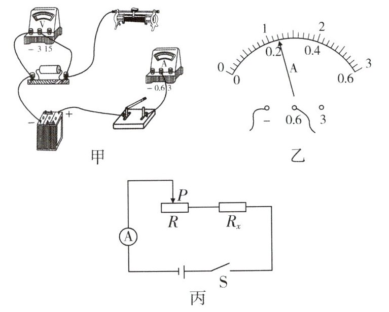 (2)当滑片移动到某位置时,电压表示数为 $ 2.4 V $,电流表示数如图乙所示,为______ $ A $,则未知电阻 $ R_x = $______ $ \Omega $.
