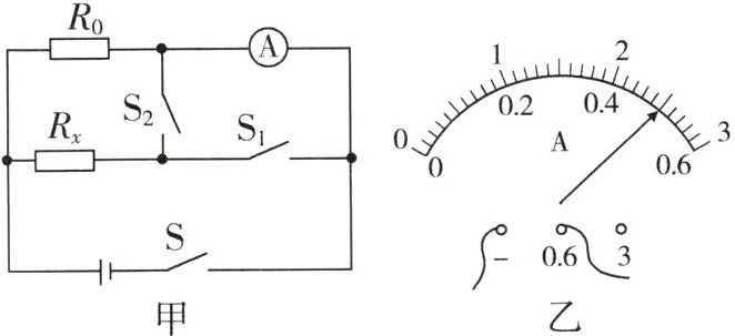 ,读出并记录电流表示数 $ I_2 $(如图乙所示).③计算 $ R_x $ 的阻值.