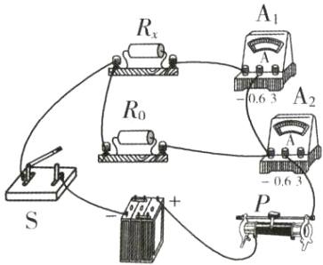 1. 课外兴趣小组要测量一个未知电阻 $ R_x $ 的阻值,现有下列器材:电源,两个相同的电流表 $ A_1 $、$ A_2 $,一个定值电阻 $ R_0 $(阻值为 $ 9 \Omega $),开关,导线若干. 兴趣小组的同学们开动脑筋,积极思考,设计出了一个测量 $ R_x $ 阻值的方法.