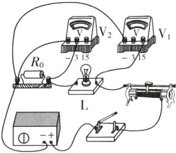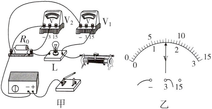 (3)排除故障后,闭合开关,移动滑片至某位置时,电压表 $ V_2 $ 示数如图乙所示,为______ $ V $,此时通过小灯泡的电流为______ $ A $.