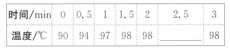 (1) 用酒精灯给水加热至沸腾. 当水温接近90℃时,每隔0.5min记录一次温度. 某探究小组记录的数据如下表,请填写空格中的数据.