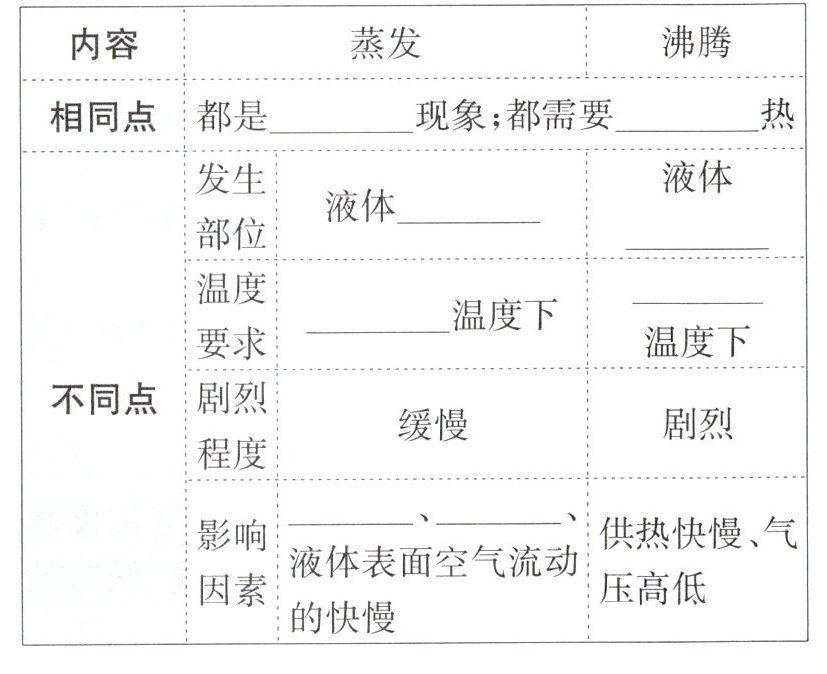1.液态 气态 沸腾 蒸发 2.内部 表面 剧烈