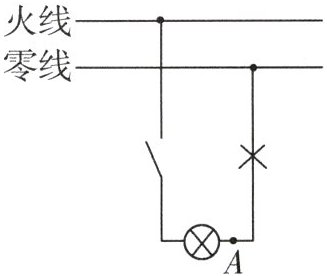 8. 如图所示的家庭电路,当闭合开关时,发现电灯不亮. 若原因是图中画“×”的位置发生了开路,则在开关闭合的情况下,用测电笔测试电路中 $A$ 点时,测电笔氖管