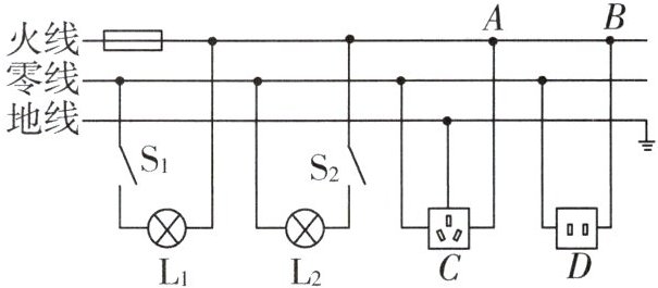 5. 新课标》如图所示的家庭电路中,有两个器件连接错误,它们是(
