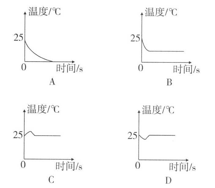 8. 模型建构在室温为25℃的教室内,小亮给温度计的玻璃泡上涂抹少量与室温相同的酒精,观察温度计的示数变化. 以下表示温度计示数随时间变化的图像中,正确的是(