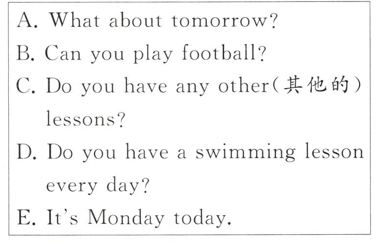 Ken:Oh,sorry. I have a swimming lesson today.