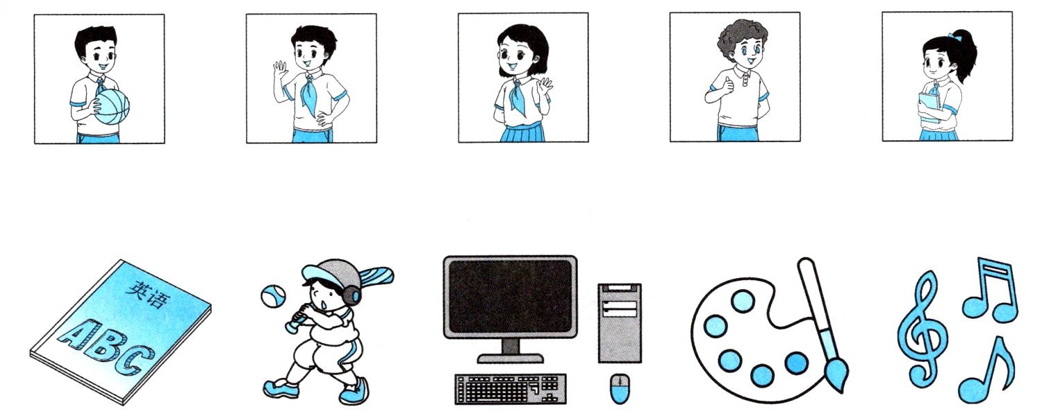 一、听录音,将人物与其最喜欢的科目连线。(听两遍)