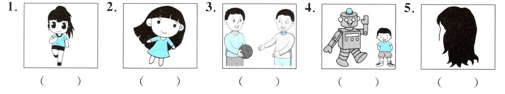 Good morning. I'm Liu Jiajia. I have big eyes, but my ears are small. Look at my hair. It's so long. I like my round face. Mingming is my friend. His mouth and nose are small. But his ears are big. Look! This is his pen. It's too short.