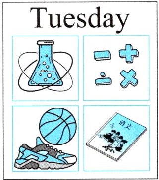 )5.[生活运用]Look at the timetable on the right. What subject don't we have on Tuesday?A.Science.