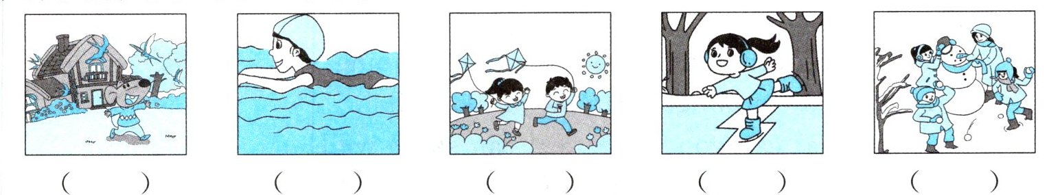 1. seasons 2. spring;warm 3. cold 4. autumn;cool 5. summer;hot;swimming