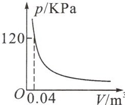 (1)解:设函数关系式为$ p=\frac{k}{V} $,根据图象可得:$ k=pV=120×0.04=4.8 $,
