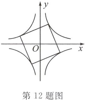 12. 如图,正方形四个顶点分别位于两个反比例函数 $ y = \frac{3}{x} $ 和 $ y = \frac{n}{x} $ 的图象的四个分支上,则实数 $ n $ 的值为