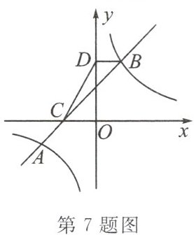 7. 如图,直线 $ AB $ 交 $ x $ 轴于点 $ C $,交反比例函数 $ y = \frac{a - 1}{x} (a > 1) $ 的图象于 $ A $、$ B $ 两点,过点 $ B $ 作 $ BD \perp y $ 轴,垂足为点 $ D $,若 $ S_{\triangle BCD} = 5 $,则 $ a $ 的值为