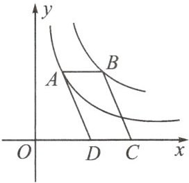 9. 如图,点 $ A $ 在双曲线 $ y = \frac{5}{x} $ 上,点 $ B $ 在双曲线 $ y = \frac{7}{x} $ 上,且 $ AB // x $ 轴,$ C $、$ D $ 在 $ x $ 轴上,若四边形 $ ABCD $ 为平行四边形,则它的面积为