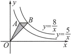 8. 如图,点$A在双曲线y= \frac{5}{x}$上,点$B在双曲线y= \frac{8}{x}$上,且$AB// x$轴,则$\triangle OAB$的面积等于