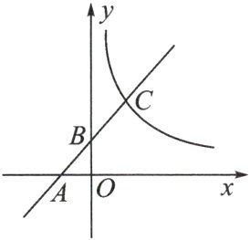 9. (武冈市期末)如图,在平面直角坐标系中,直线$y = x + 1与x$轴,$y轴分别交于点A$,$B$,与反比例函数$y= \frac{k}{x}的图象在第一象限交于点C$,若$AB = BC$,则$k$的值为
