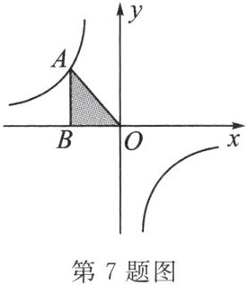 7. (永州市期末)如图,已知反比例函数$y= \frac{k}{x}$($k$为常数,$k\neq0$)的图象经过点$A$,过$A点作AB\perp x$轴,垂足为$B$.若$\triangle AOB的面积为1$,则$k=$