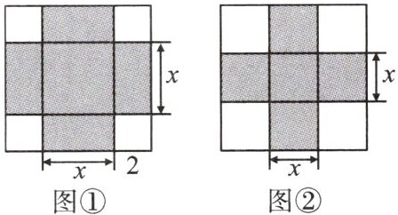 10. (解题方法型阅读理解题)《代数学》中有记载,形如$x^{2}+8x= 33$的方程,求正数解的几何方法是:“如图①,先构造一个面积为$x^{2}$的正方形,再以正方形的边为一边向外构造四个面积为$\frac{8}{4}x = 2x$的长方形,得到大正方形的面积为$33+2^{2}×4 = 49$,则该方程的正数解为$\sqrt{49}-2×2 = 3$。”若按此方法解关于$x的方程x^{2}+20x+p = 0$时,构造出如图②所示的图形,已知阴影部分的面积为125。则该方程的正数解是