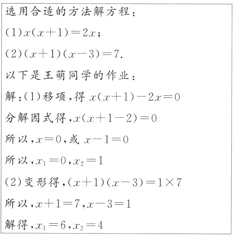 请你帮王萌检查他的作业是否正确,把不正确的改正过来。