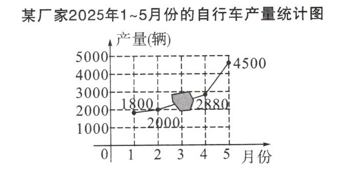 9. (临湘市期末)某厂家2025年1~5月份的自行车产量统计图如图所示,3月份自行车产量不小心被墨汁覆盖,已知2月份到4月份该厂家每个月自行车产量的月增长率都相同,则3月份自行车产量为