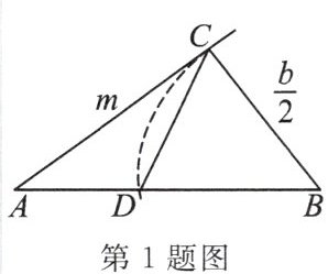 1. 古希腊数学家丢番图在《算术》中提到了一元二次方程的问题,欧几里得的《原本》中记载了形如 $ x^{2}+bx = m^{2}(b > 0,m > 0) $ 的方程的图解法是:如图,画 $ Rt\triangle ABC $,使 $ \angle ACB = 90^{\circ} $, $ BC = \frac{b}{2} $, $ AC = m $,再在斜边 $ AB $ 上截取 $ BD = \frac{b}{2} $,则该方程的一个正实数根等于 (