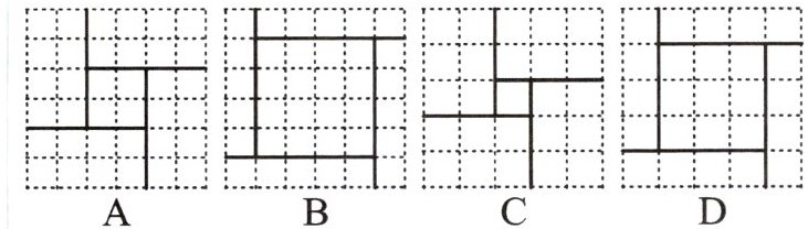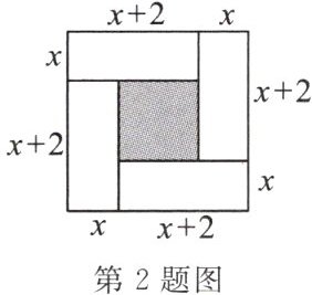 2. 三国时期的数学家赵爽在其所著的《勾股圆方图注》中记载过一元二次方程(正根)的几何解法,以方程 $ x^{2}+2x - 35 = 0 $ 即 $ x(x + 2) = 35 $ 为例说明,记载的方法是:构造如图,大正方形的面积是 $ (x + x + 2)^{2} $.同时它又等于四个矩形的面积加上中间小正方形的面积,即 $ 4×35 + 2^{2} $,因此 $ x = 5 $.则在下面四个构图中(网格中每个小正方形边长为 1 个单位),能正确说明方程:$ x^{2}-x - 6 = 0 $ 解法的构图是 (