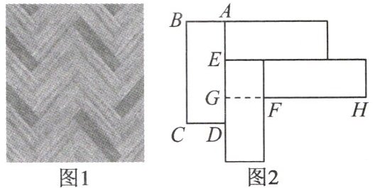 10. (新考法)九年级学生融融陪同父母选购家装木地板,她感觉某品牌木地板拼接图(如图 1)比较美观,通过手绘(如图 2)、测量、计算发现点 $E$ 是 $AD$ 的黄金分割点,即 $DE\approx0.618AD$,延长 $HF$ 与 $AD$ 相交于点 $G$,则 $EG\approx$