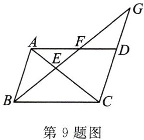 9. 如图,在平行四边形ABCD中,F是AD上一点,且$AF= \frac{3}{2}FD$,连接BF并延长交CD的延长线于点G,则$\frac{BE}{EG}$的值为______.