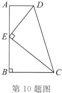 10.(教材第 80 页练习第 2 题变式)如图,在四边形 $ABCD$ 中,$AD // BC$,$\angle ABC = 90^{\circ}$,点 $E$ 是 $AB$ 上一点,且 $DE \perp CE$.若 $AD = 1$,$BC = 2$,$CD = 3$,则 $CE$ 与 $DE$ 的数量关系正确的是(