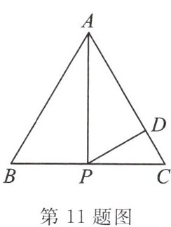 11. 如图,在等边 $\triangle ABC$ 中,$P$ 为 $BC$ 上一点,$D$ 为 $AC$ 上一点,且 $\angle APD = 60^{\circ}$,$BP = 2$,$CD = 1$,则 $\triangle ABC$ 的边长为______