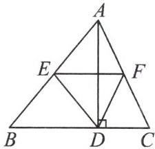 6. 如图,$AD是\triangle ABC$的高,$E$,$F分别是AB$,$AC$的中点. 求证:$\triangle DEF\backsim\triangle ABC$.