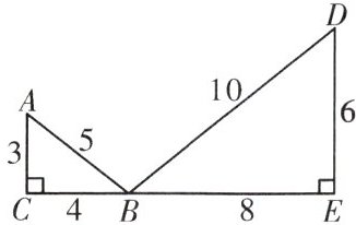 ∵$\frac{AC}{DE}=\frac{3}{6}=\frac{1}{2}$,$\frac{BC}{BE}=\frac{4}{8}=\frac{1}{2}$,$\frac{AB}{DB}=\frac{5}{10}=\frac{1}{2}$,