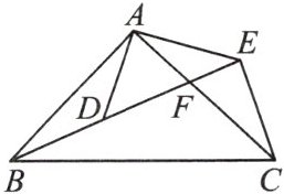 10. 如图,已知$\frac{AB}{AD}= \frac{BC}{DE}= \frac{AC}{AE}$,点$B$,$D$,$F$,$E$在同一条直线上,请找出图中的相似三角形,并说明理由.