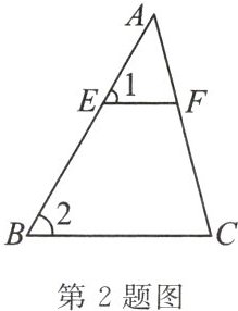 2. 如图,在 $\triangle ABC$ 中,点 E,F 分别在边 AB,AC 上,$\angle 1 = \angle 2$,若 $BC = 4$,$AF = 2$,$CF = 3$,则 $EF = $
