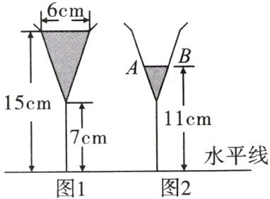 8.(河北省中考)图1是装了液体的高脚杯示意图(数据如图),用去一部分液体后如图2所示,此时液面AB = (
