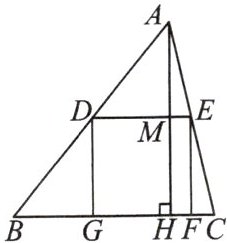 解:假设正方形边长为x厘米,在△ABC中可得:$\frac{DE}{BC}$=$\frac{AM}{AH}$,