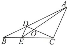 8. 如图,D、E 分别是△ABC 的边 AB、BC 上的点,且 $ DE// AC $,AE、CD 相交于点 O,若 $ S_{△DOE}:S_{△COA}= 1:9 $,则 $ S_{△BDE} $ 与 $ S_{△CDE} $ 的比是 (