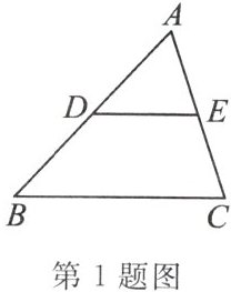 1. 如图,在△ABC 中,点 D,E 分别为 AB,AC 的中点,则 $ S_{△ADE}:S_{△ABC}= $ (