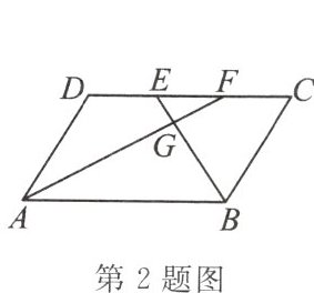 2. (广西自治区中考改编)如图,四边形 ABCD 为平行四边形,E,F 为 CD 边的两个三等分点,连接 AF,BE,交于点 G,则 $ S_{△EFG}:S_{△ABG}= $