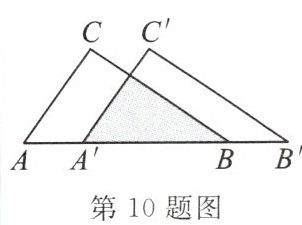 10. 如图,把△ABC 沿直线 AB 平移到△A’B’C’的位置,它们重叠部分(阴影部分)的面积为△ABC 面积的一半.若 $ AB = \sqrt{2} $,则此三角形移动的距离 $ AA’ $ 是