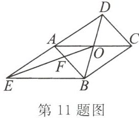 11. (辽宁省中考)如图,平行四边形 ABCD 的对角线 AC,BD 相交于点 O,过点 B 作 $ BE// AC $,交 DA 的延长线于点 E,连接 OE,交 AB 于点 F,则四边形 BCOF 的面积与△AEF 的面积的比值为